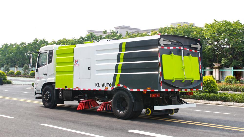 1.采用吸掃混合的方式收集垃圾,濕式除塵、電液,液壓傾翻卸料的作業(yè)方式對路面進行清掃作業(yè)。