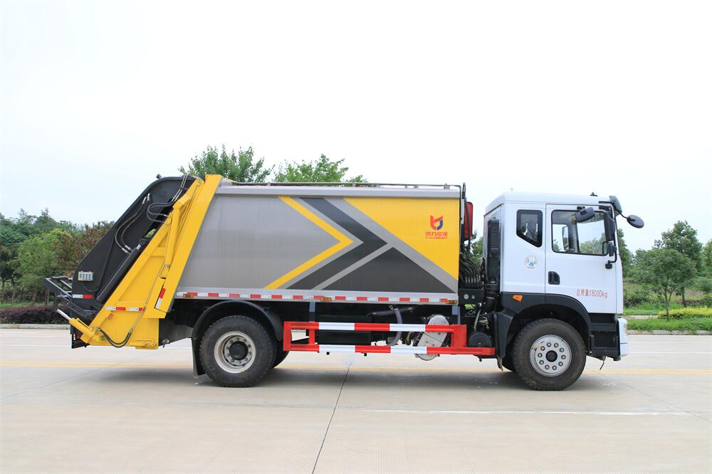 上裝配置:垃圾箱容積:13方,新款平面弧形廂體,廂體材料為武鋼優質碳鋼,PLC一鍵操作**,手電一體操作模式,兩側雙電控,帶駕駛室內操作,底板支撐加強,雙向壓縮,開放式易清潔污水箱。壓縮式垃圾車采用機電液一體化技術,借助機、電、液聯合自動**系統、電腦**、手動操作系統,通過填裝器和推鏟等專用裝置,實現垃圾倒入、壓碎或壓扁、強力裝填,把垃圾擠入車廂并壓實和推卸,污水全部進入污水廂,解決了垃圾運輸過程中的二次污染的問題。壓縮式垃圾車具有自動反復壓縮以及蠕動壓縮功能,壓縮比高、密封性好、裝載量大﹑操作方便、環保性好﹑整車利用功率高等優點。作業自動化,垃圾收集方式簡便、高效。后翻轉機構選裝:1、掛塑料桶式翻轉機構;2、掛鐵桶式翻轉機構;3、擺臂式翻轉機構; 4、簸箕斗式翻轉機構。