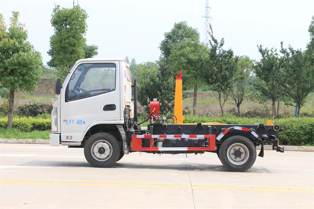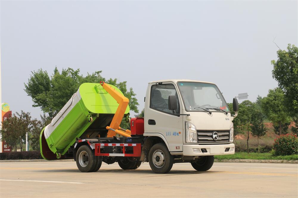 勾臂式垃圾車(車廂可卸式垃圾車)介紹: 車廂可卸式垃圾車又叫拉臂式垃圾車,是一種采用高新設(shè)計(jì)可伸縮的鉤臂,實(shí)現(xiàn)垃圾廂的二次吊裝,自吊上放下,可自行傾倒垃圾的環(huán)衛(wèi)設(shè)備。 拉臂式垃圾車結(jié)構(gòu)簡(jiǎn)單,操作穩(wěn)定方便,裝卸效率高,機(jī)械化程度高,節(jié)省人力。鉤臂垃圾車一車可帶多個(gè)垃圾廂,在裝卸的運(yùn)輸過程中可有效地避免二次污染。 拉臂垃圾車采用高新設(shè)計(jì)可擺動(dòng)的鉤臂,垃圾箱由框架、開啟油缸、滑輪、后門和若干加強(qiáng)框架與鋼板焊接而成。調(diào)換貨廂快捷方便,貨廂上帶蓋(倒垃圾時(shí)可翻開),鉤臂垃圾車?yán)鴰w可選用碳鋼、不銹鋼材質(zhì)、內(nèi)部采取環(huán)氧樹脂防腐處理,改裝部分與原車底盤為可分離式,維修方便且保持了原車的機(jī)動(dòng)性及行駛性能。