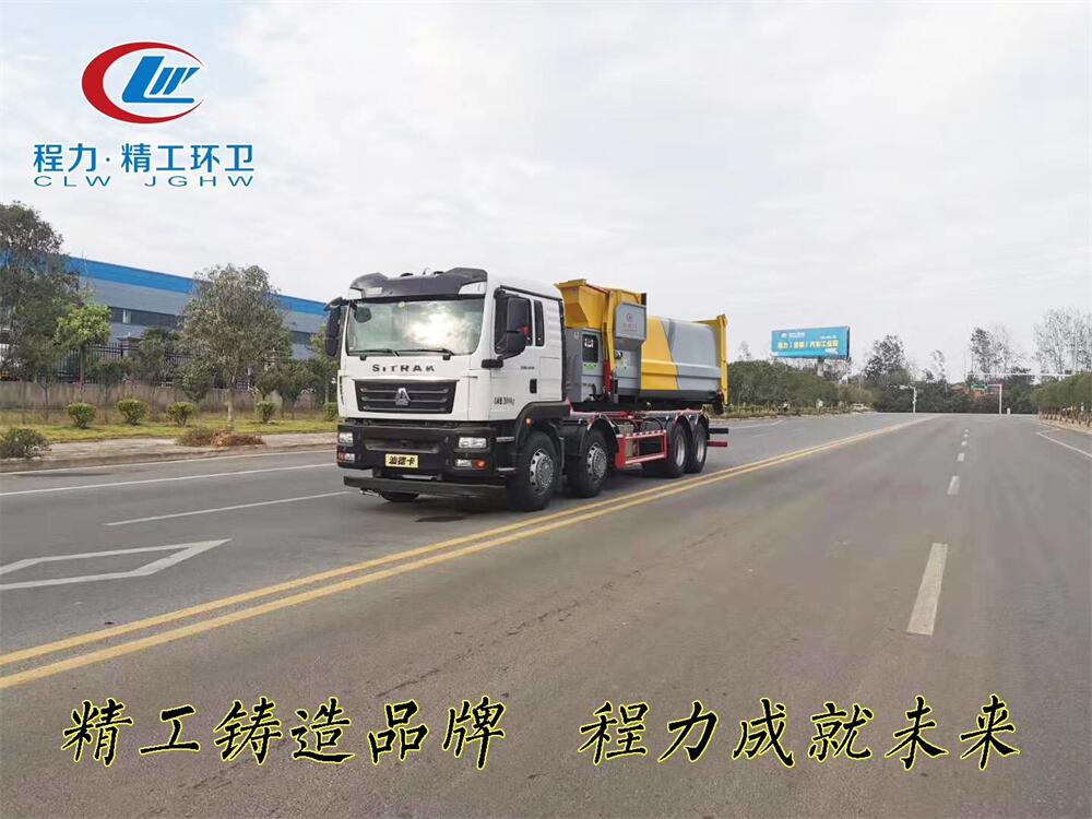 勾臂式垃圾車(車廂可卸式垃圾車)介紹: 車廂可卸式垃圾車又叫拉臂式垃圾車,是一種采用高新設計可伸縮的鉤臂,實現垃圾廂的二次吊裝,自吊上放下,可自行傾倒垃圾的環衛設備。 拉臂式垃圾車結構簡單,操作穩定方便,裝卸效率高,機械化程度高,節省人力。鉤臂垃圾車一車可帶多個垃圾廂,在裝卸的運輸過程中可有效地避免二次污染。 拉臂垃圾車采用高新設計可擺動的鉤臂,垃圾箱由框架、開啟油缸、滑輪、后門和若干加強框架與鋼板焊接而成。調換貨廂快捷方便,貨廂上帶蓋(倒垃圾時可翻開),鉤臂垃圾車垃圾廂體可選用碳鋼、不銹鋼材質、內部采取環氧樹脂防腐處理,改裝部分與原車底盤為可分離式,維修方便且保持了原車的機動性及行駛性能。