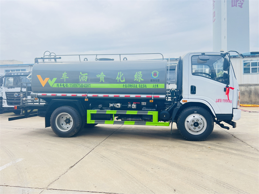 灑水車性能特點:前沖(噴)后灑,帶側噴,罐體后帶工作平臺,平臺上安裝綠化灑水炮,灑水炮可360旋轉,可連續調成直沖狀、大雨、小雨、毛毛雨,帶安全護欄,配備全國質量評比**名的杭州威龍大功率專用  灑水泵,泵可自吸自排,安裝過濾網,帶消防接口,可通過消防栓進水,帶自流閥,隨車選裝20米綠化卷盤,可噴灑農藥。