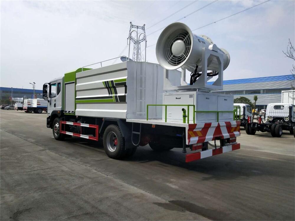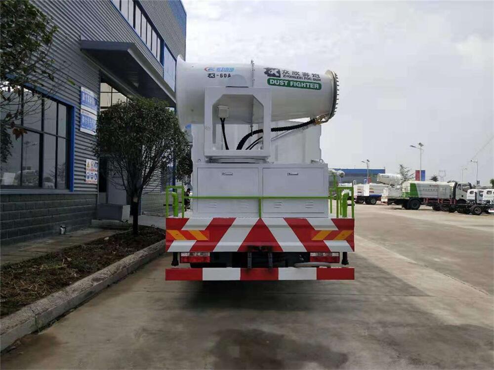 上裝配置:罐體容積為 12立方,選配風(fēng)送式霧炮機(jī)組射程30米、40米、50米、60米、80米、100米、120米霧炮,罐體鋼板為4mm碳鋼Q235材質(zhì),罐內(nèi)隔板具有防波作用,以減輕汽車行駛時(shí)罐體液體沖擊,罐體及整車外形尺寸按照公告。帶大功率專用灑水泵,泵可自吸自排,整車前沖、后灑、側(cè)噴、帶65消防接口,后平臺(tái)配CLW-50、CLW-60、CLW-80、CLW-100、CLW-120型風(fēng)送式霧炮機(jī)組;罐體前封頭配大功率柴油發(fā)電機(jī)組;前封頭帶水位計(jì),后平臺(tái)主管路帶1寸澆花接口,后爬梯。帶兩根輸水管及陰陽端。罐體顏色:銀/灰/綠,罐體兩側(cè)噴“多功能抑塵車”字樣,貼反光標(biāo)示。