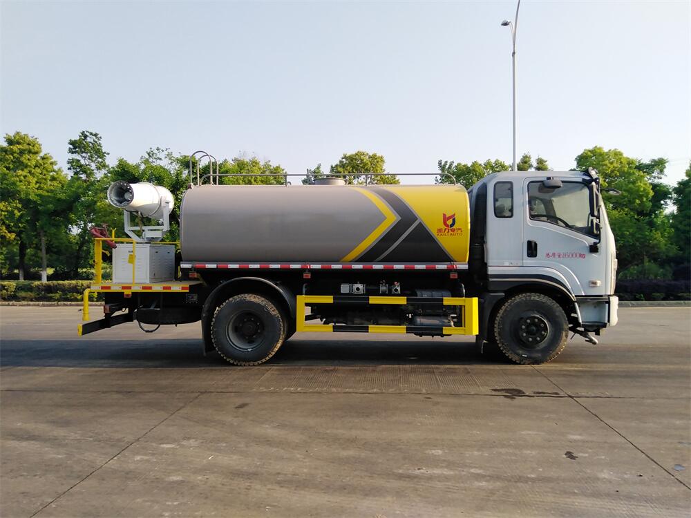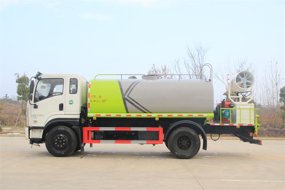 主要由發(fā)動機帶動變速箱,變速箱上安裝的取力器帶動灑水泵,灑水泵產(chǎn)生動力,將罐體內(nèi)部的液體通過管網(wǎng)噴灑出去。工作范圍:自吸高度:≥7m,灑水寬度:≥14m,**大射程:≥28m;可調(diào)節(jié)成柱狀,射程≥28m;也可調(diào)節(jié)成霧狀,射程≥5m。