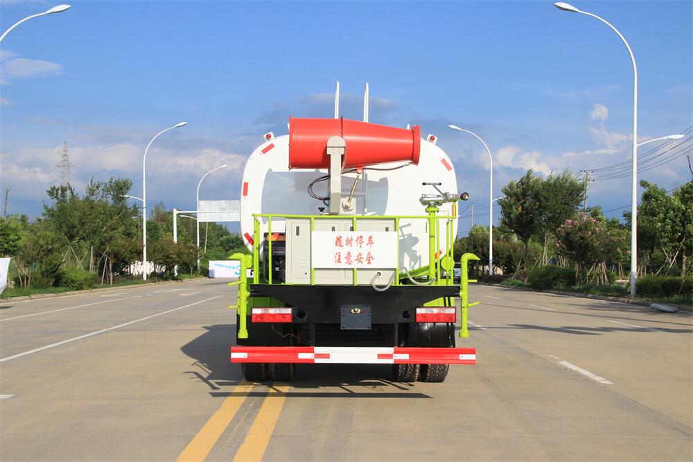 上裝配置:罐體容積 12-15立方,風(fēng)送式霧炮機(jī)組30米,40米選擇,罐體采用國標(biāo)Q235碳鋼材質(zhì),罐體厚度4MM,前后封頭5MM加厚型,罐體內(nèi)雙層隔板具有防波蕩作用,以減輕汽車行駛時罐內(nèi)液體沖擊;灑水車整車及外形尺寸嚴(yán)格按照**機(jī)動車公告制作而成;裝配大功率專用灑水泵,前沖、后灑、側(cè)噴、后平臺帶綠化灑水炮,灑水炮可全方位旋轉(zhuǎn),可連續(xù)調(diào)成直沖狀、大雨、小雨、毛毛雨;配消防接口,自流閥,濾網(wǎng),帶自吸自排功能。前封頭帶水位計,后平臺主管路帶1寸澆花接口,后爬梯,帶1個消防接頭,帶1個自流閥,1個過濾裝置,其余標(biāo)配。