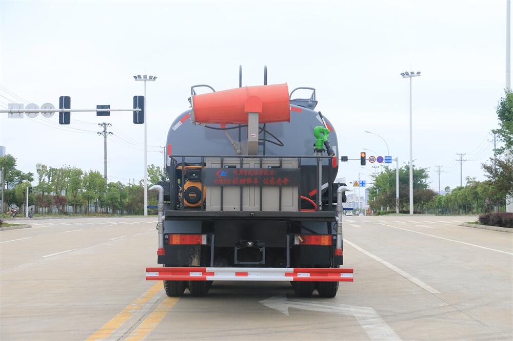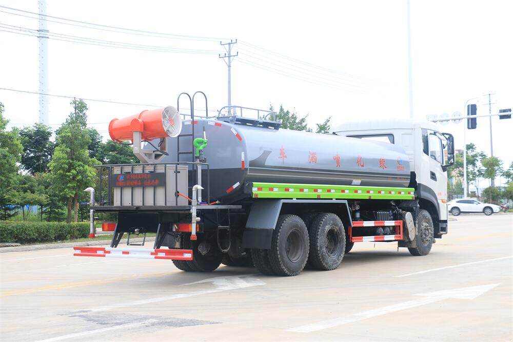 上裝配置:罐體容積 18-20立方,風送式霧炮機組30米,40米選擇,罐體采用國標Q235碳鋼材質,罐體厚度4MM,前后封頭5MM加厚型,罐體內雙層隔板具有防波蕩作用,以減輕汽車行駛時罐內液體沖擊;灑水車整車及外形尺寸嚴格按照**機動車公告制作而成;裝配大功率專用灑水泵,前沖、后灑、側噴、后平臺帶綠化灑水炮,灑水炮可全方位旋轉,可連續調成直沖狀、大雨、小雨、毛毛雨;配消防接口,自流閥,濾網,帶自吸自排功能。前封頭帶水位計,后平臺主管路帶1寸澆花接口,后爬梯,帶1個消防接頭,帶1個自流閥,1個過濾裝置,其余標配。
