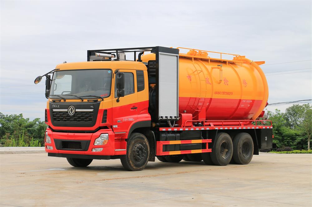 22方清洗吸污車-東風天龍22方清洗吸污兩用車-帶副發動機 圓罐