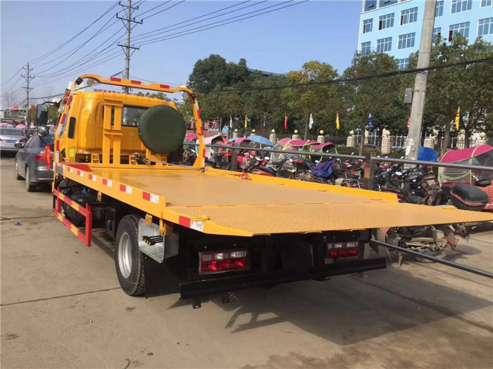 該車平板長度4.2米,寬2.3米,平板采用新型一次性成型帶孔沖壓板或4個厚花紋板,尾板可選用翻轉板或新款抽拉式尾板,尾板長1.2米,3噸上裝,配液壓絞盤4噸,21米鋼絲繩,雙側聯動操作。