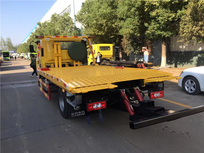 該車平板長度4.2米,寬2.3米,平板采用新型一次性成型帶孔沖壓板或4個厚花紋板,尾板可選用翻轉板或新款抽拉式尾板,尾板長1.2米,3噸上裝,配液壓絞盤4噸,21米鋼絲繩,雙側聯動操作。