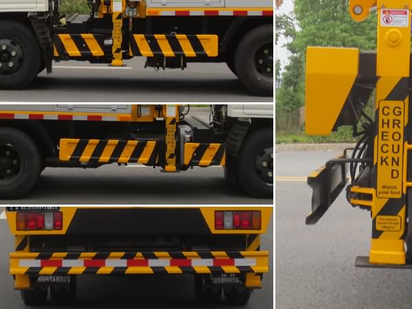 后伸:145mm,295mm,外形尺寸長與后伸對應關系(mm):5650/145,5800/295;隨底盤選裝駕駛室;側面防護及后下部防護裝置材料材質:Q235,連接方式:焊接加螺栓連接;后下部防護裝置斷面尺寸(寬贅?:25?50(mm),離地高度:430mm;ABS系統型號:APG3550500A,ABS系統生產廠家:浙江亞太機電股份有限公司;主要專用裝置為升縮臂,用于搶修電力、通訊、路燈等高空作業.