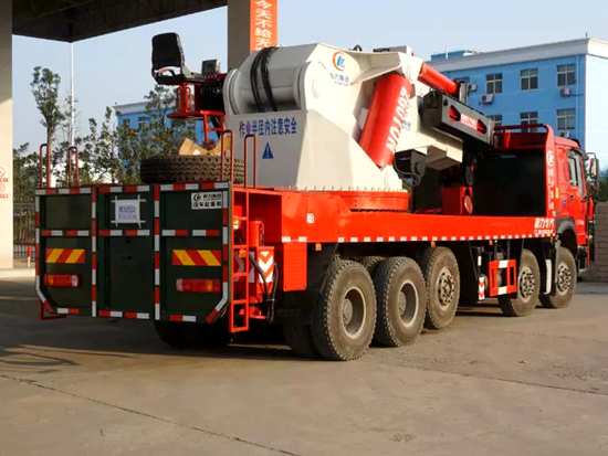★車吊系列可上操作、也可以遠程操作,可正反360度旋轉。吊機配備多支腿,各支腿可單獨調節以調整車架水平,支腿跨距大,整機穩定性好。