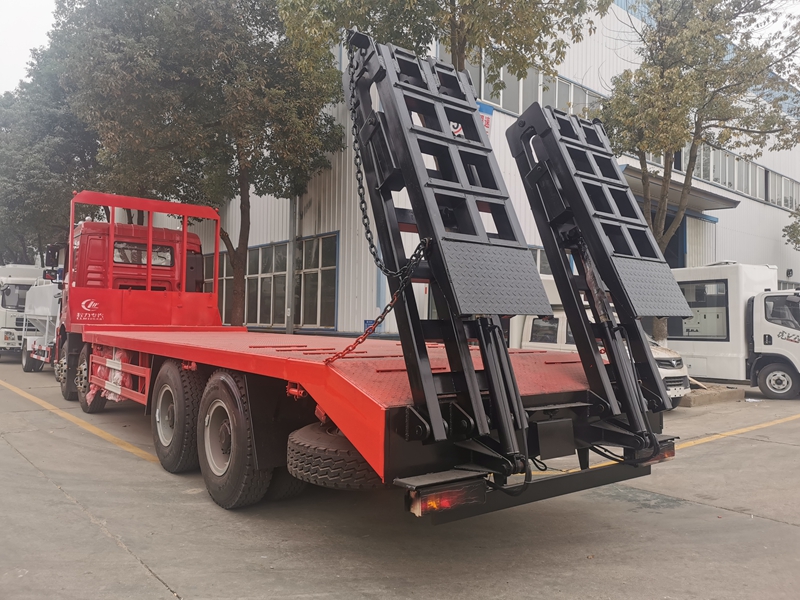 | 其他 | 備注:該車專用裝置為平板,用于工程機械和一些不可拆卸貨物的長途運輸.防護材料:Q235碳鋼,連接方式:左右側面與平板縱梁采用焊接連接, 后部防護與車架采用焊接連接,后部防護斷面尺寸(mm):50×120,后部防護離地高度(mm):490;隨底盤選裝同系列駕駛室、遮陽罩及保險杠,選裝不同樣式的爬梯.ABS系統(tǒng)生產廠家及型號為:廣州市科密汽車制動技術開發(fā)有限公司/CM4XL-4S/4K(4S/4M), 西安正昌電子有限責任公司/ZQFB-V, 浙江萬安科技股份有限公司/VIE ABS-Ⅱ;安裝具有衛(wèi)星定位功能的行駛記錄儀.發(fā)動機WP12.375E50 對應的油耗值為:40.48。整車長/軸距/后懸對應關系為(mm):11900/1800+4575+1400/2600,11300/1800+3975+1400/2600,10900/1800+3575+1400/2600,10400/1800+3000+1400/2675.選裝不同樣式的爬梯結構。 | ||