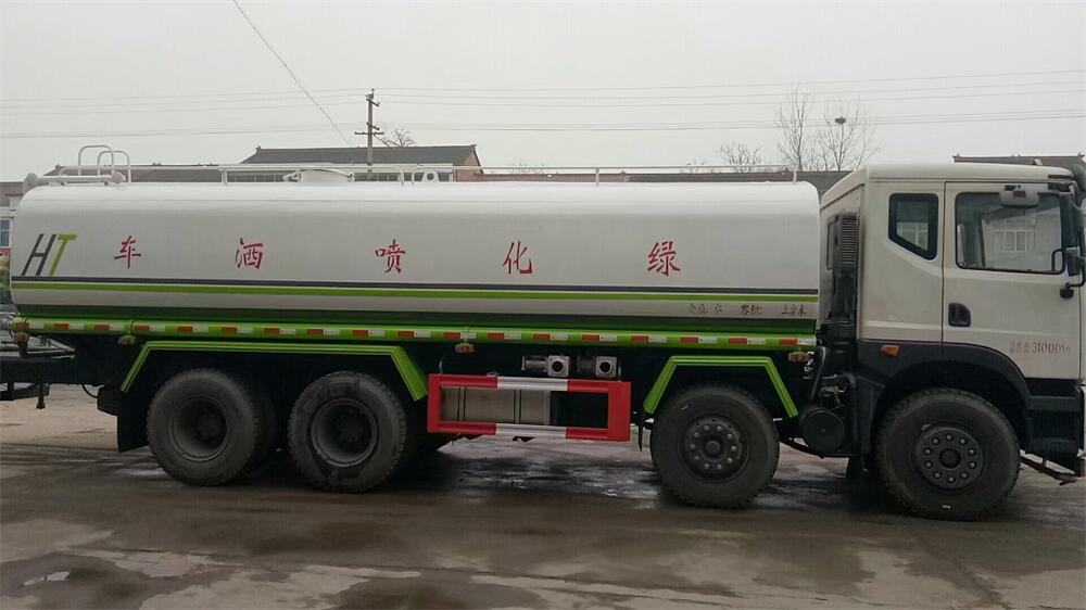 灑水車前裝有鴨形噴嘴或圓頭沖嘴,后面裝有圓柱開灑水噴嘴或蓮蓬頭噴嘴,后部有一工作平臺,裝配有水炮。后部還可裝8個噴嘴(選裝)。